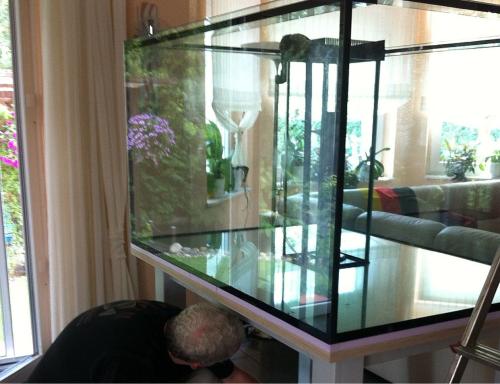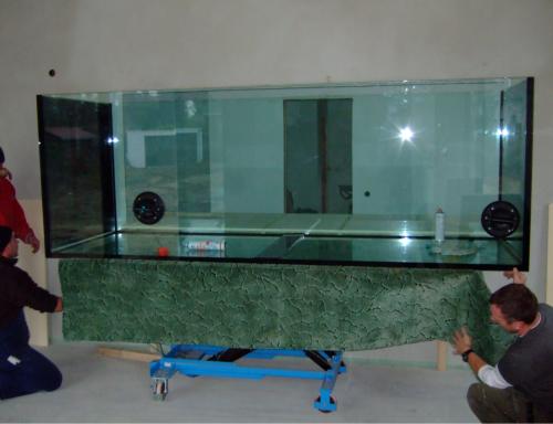 Bei größeren Aquarien ist eine Vorort Verklebung von Vorteil.